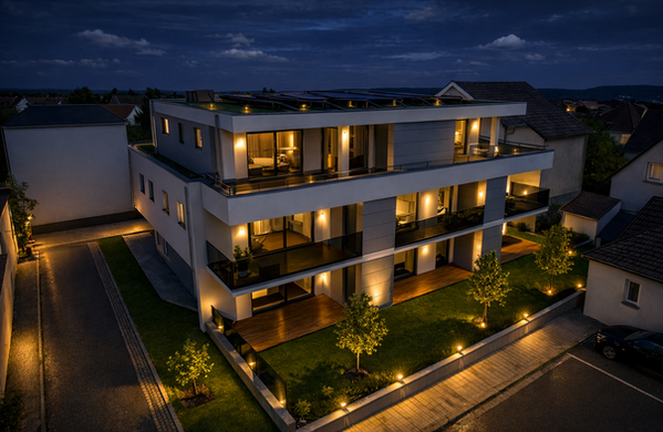 Hier entsteht ein attraktives Wohnensemble aus zwei modernen Mehrfamilienhäusern mit jeweils fünf Wohneinheiten, das zeitgemäßen Wohnkomfort mit urbanem Lebensgefühl verbindet. Die Architektur überzeugt durch eine moderne, offene Bauweise, lichtdurchflutete Räume und klar strukturierte Grundrisse, die ein großzügiges und zugleich behagliches Wohnambiente schaffen.